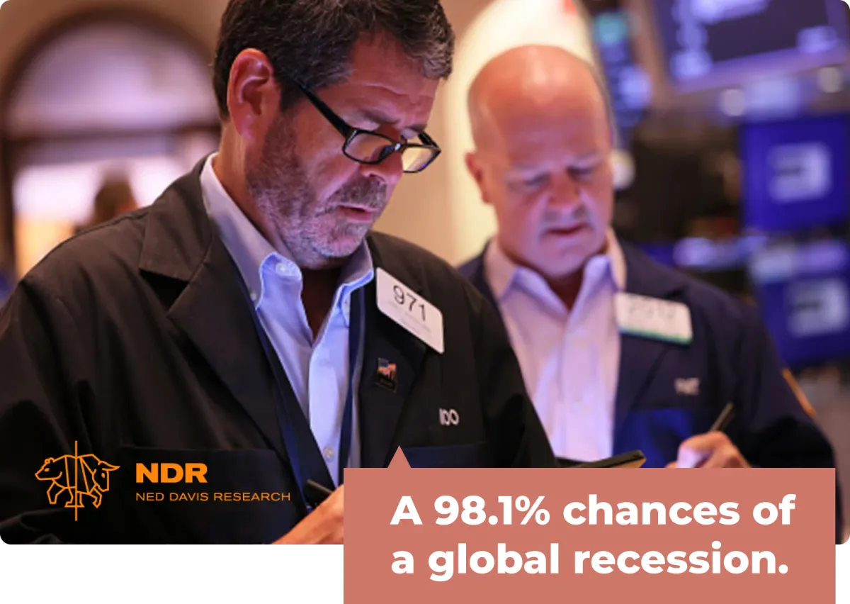 Ned Davis Research, 2022: “There now is a 98.1% change of a global recession.”