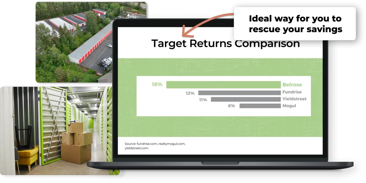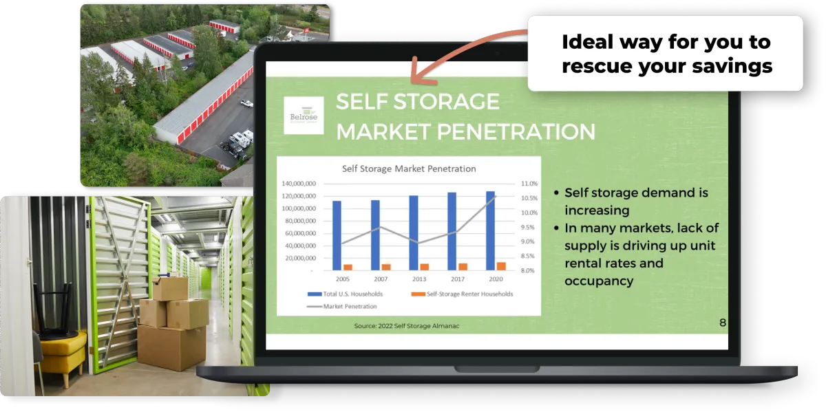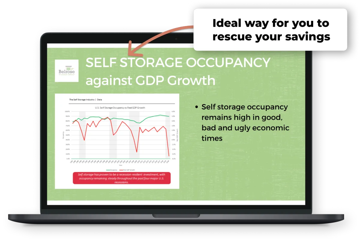 Here's the secret. Self storage is the best performing real estate investment for good reason. Because anytime the economy goes down, people downsize.